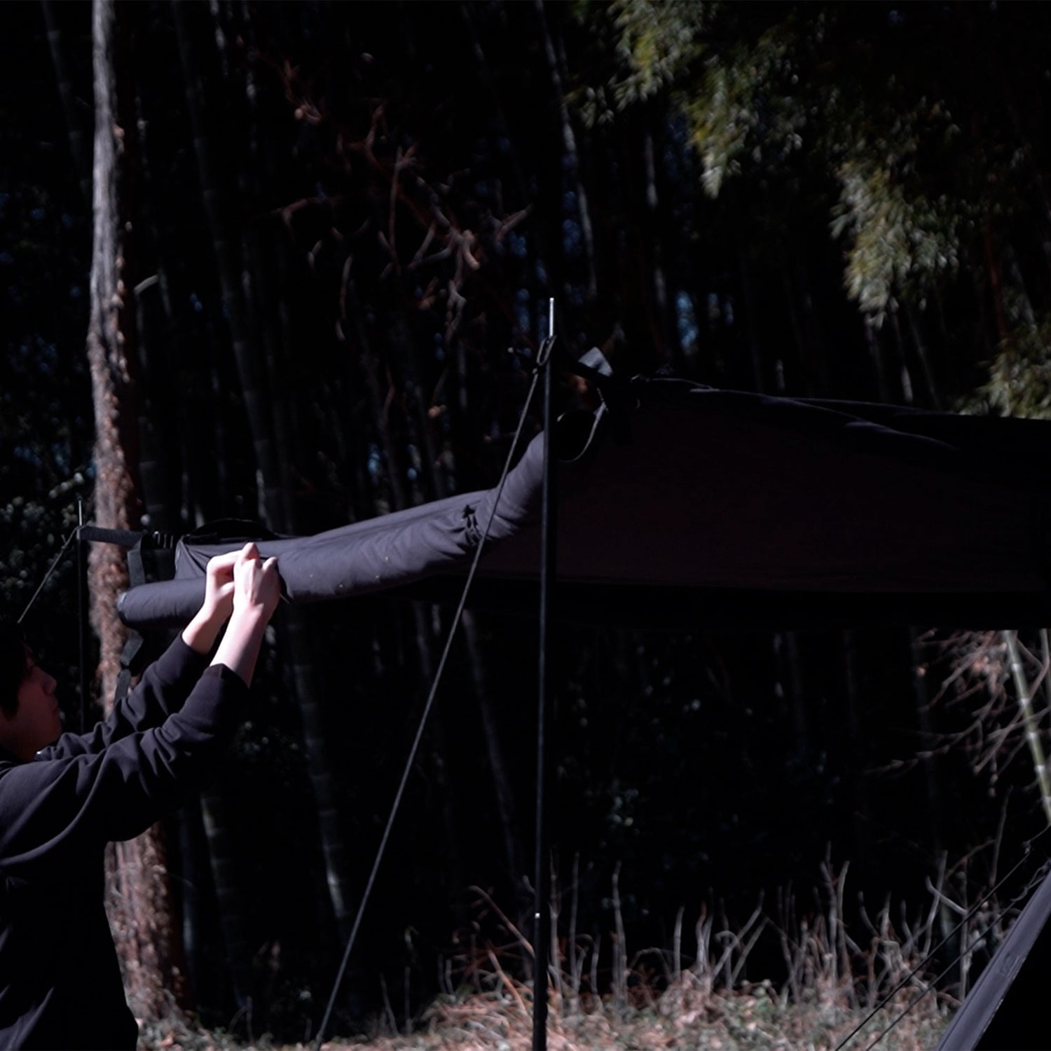 - T/C fabric is highly absorbent and takes a long time to dry, so if the tent gets wet due to rain, snow, or condensation, make sure to dry it completely after use before storing it. If it is not dried sufficiently, mold may form.