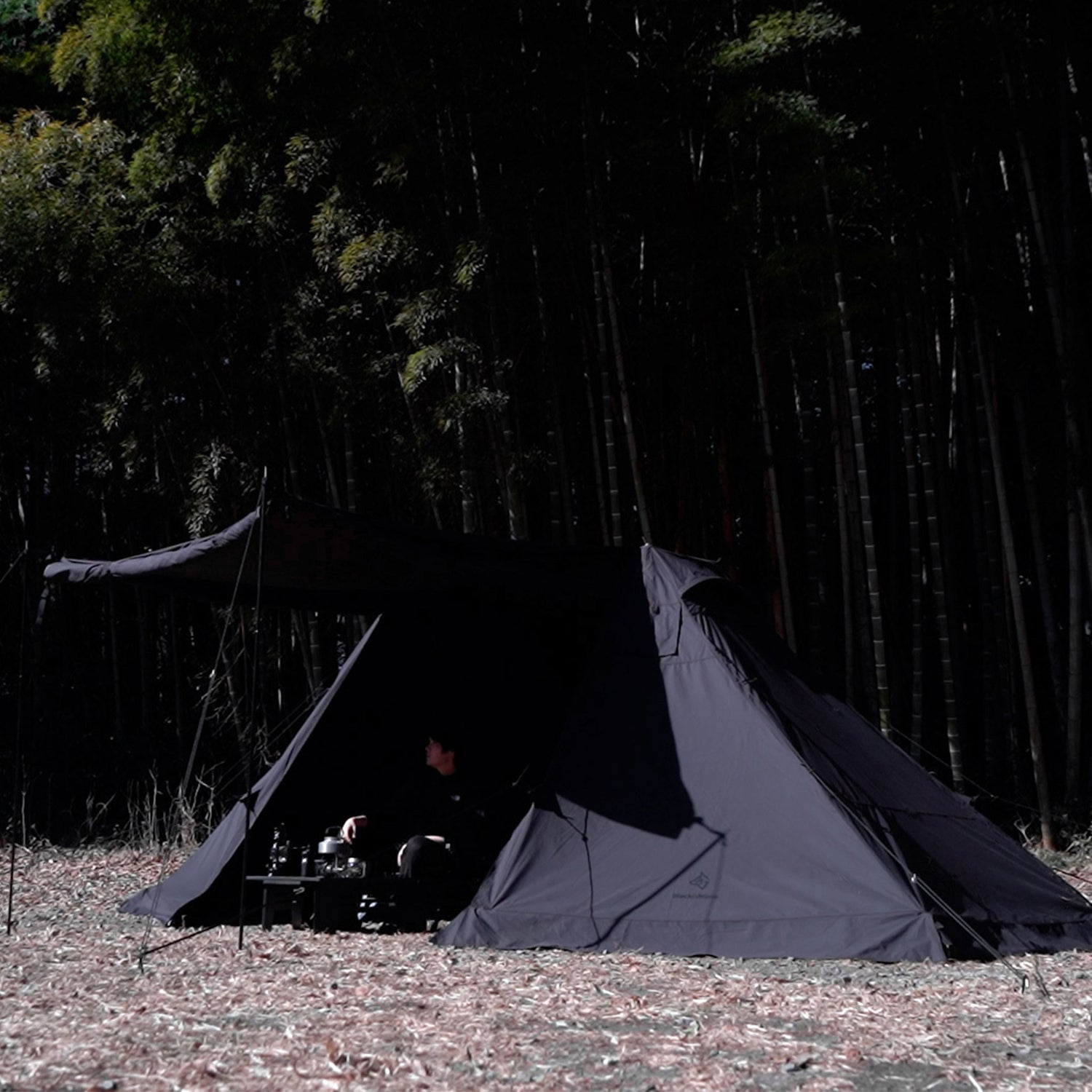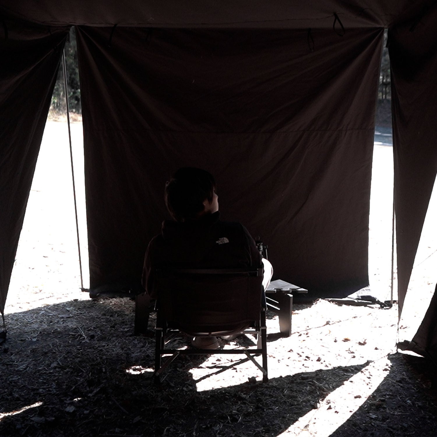 ・TC material ・It is heavy, but it was easy to set up as all you had to do was hammer in the pegs and set up the poles. ・It blocks out light so well that it feels like night inside the tent even during the day.🤣