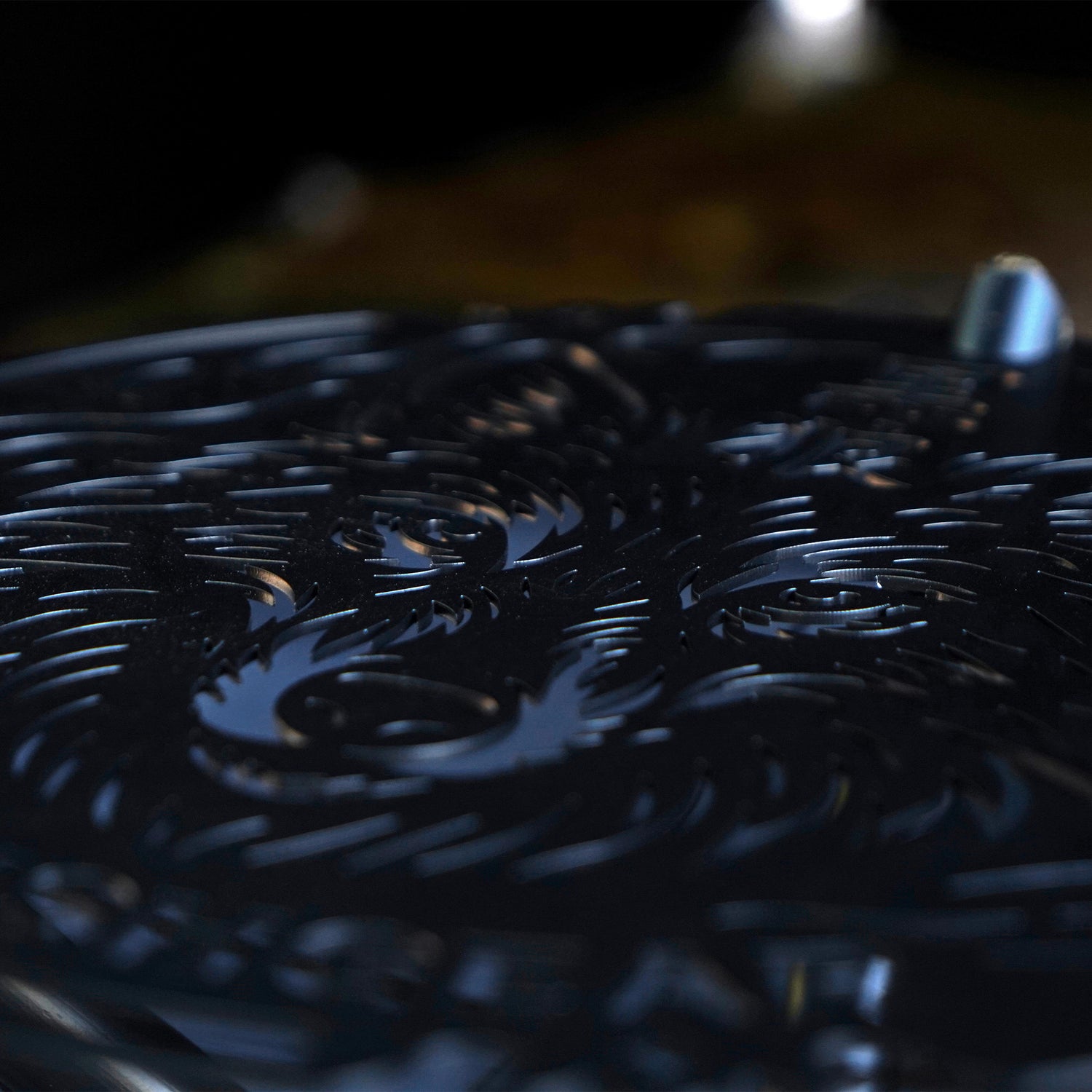 FicxMoCが得意とする精密な板金・溶接技術を駆使し、BlackishGearを象徴する黒狼デザインを大胆かつ繊細に天板へレーザーカット。