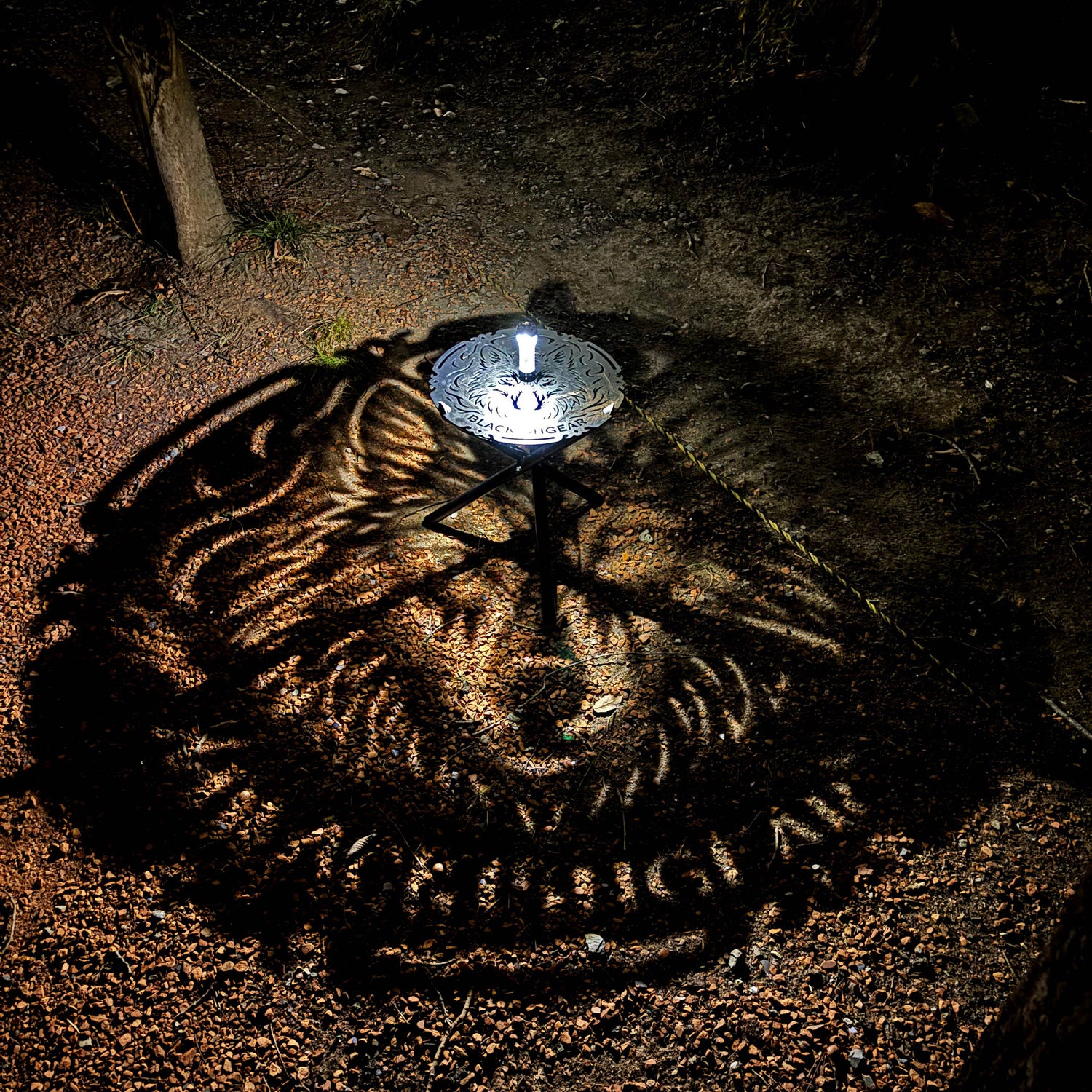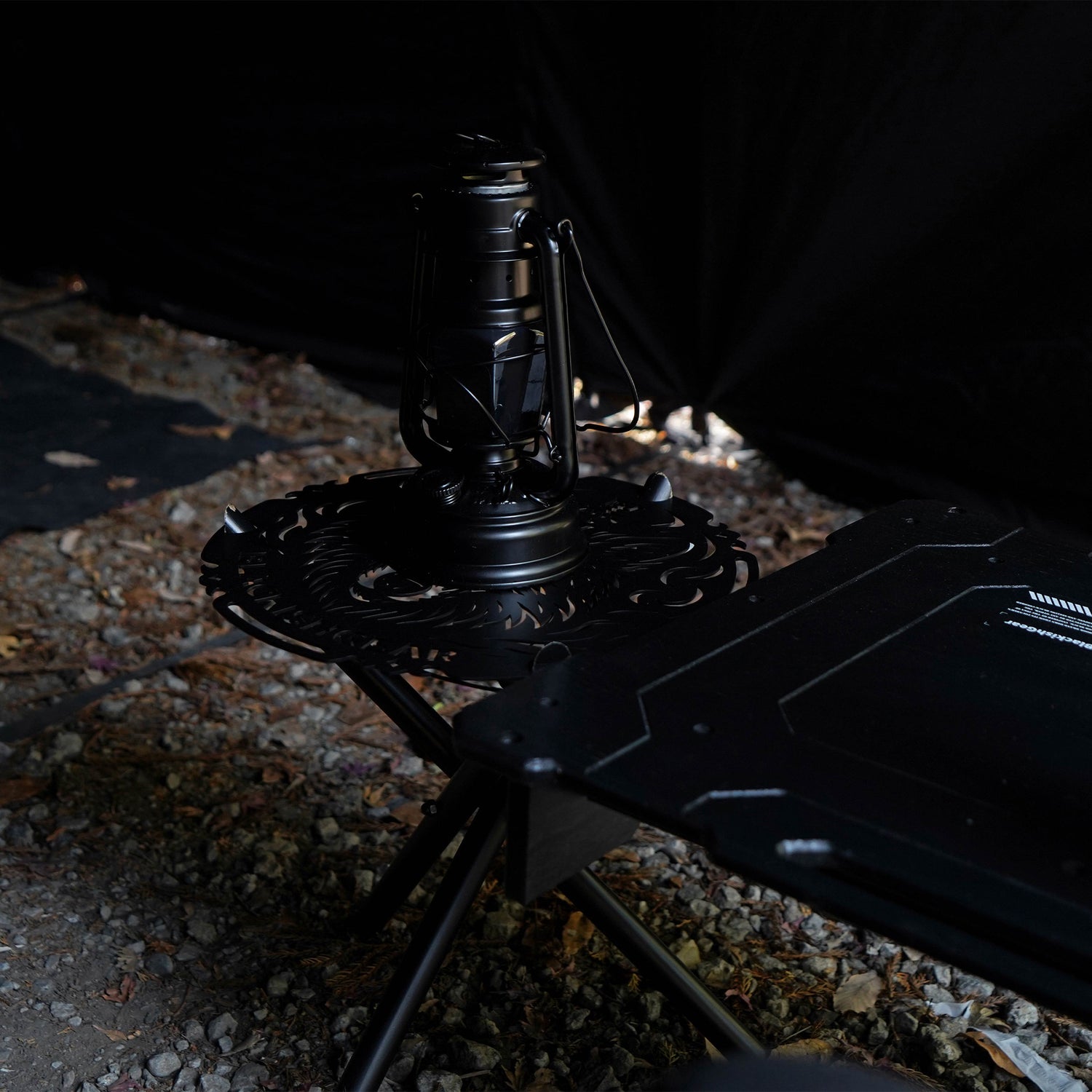 夜のキャンプサイトで静かに浮かび上がる姿は、ただのテーブルを超えた “影を楽しむギア” として仕上がっています。
