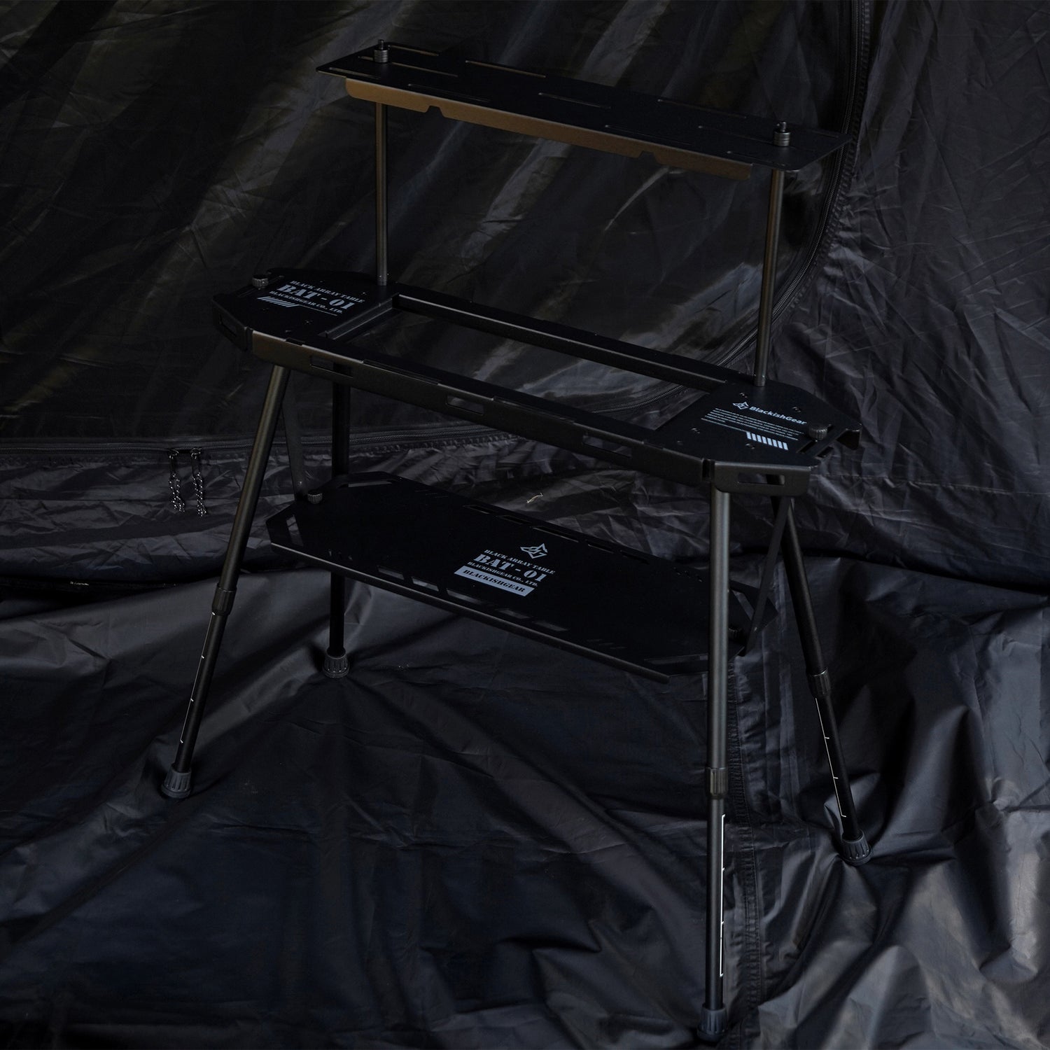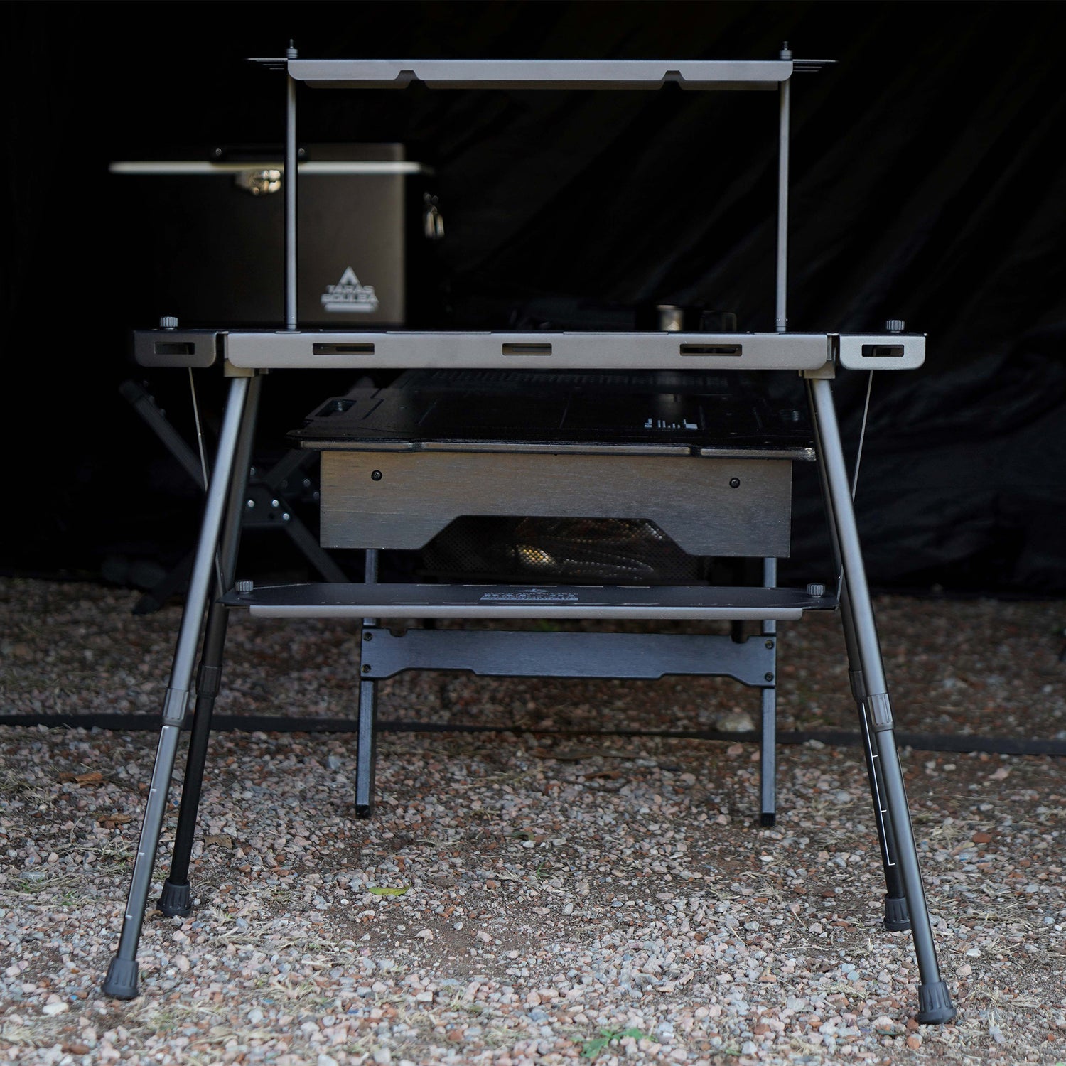 置くだけで絵になるキャンプサイトをつくるための、3段構造タクティカルテーブルです。