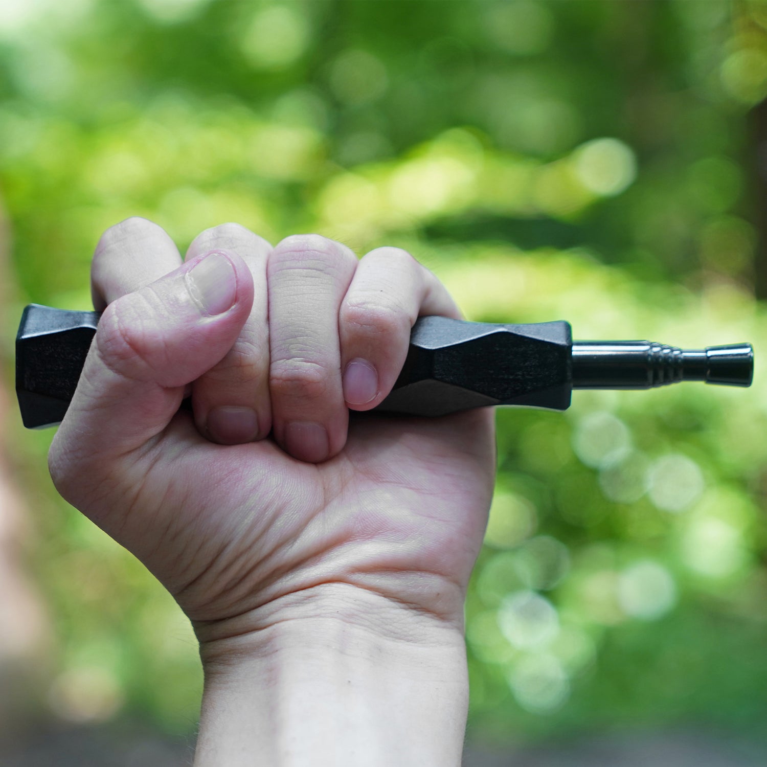 天然木を黒に染め上げた名栗加工グリップのデザインはブラックのスタイリッシュさとウッドの質感が共存したこだわりの火吹き棒。