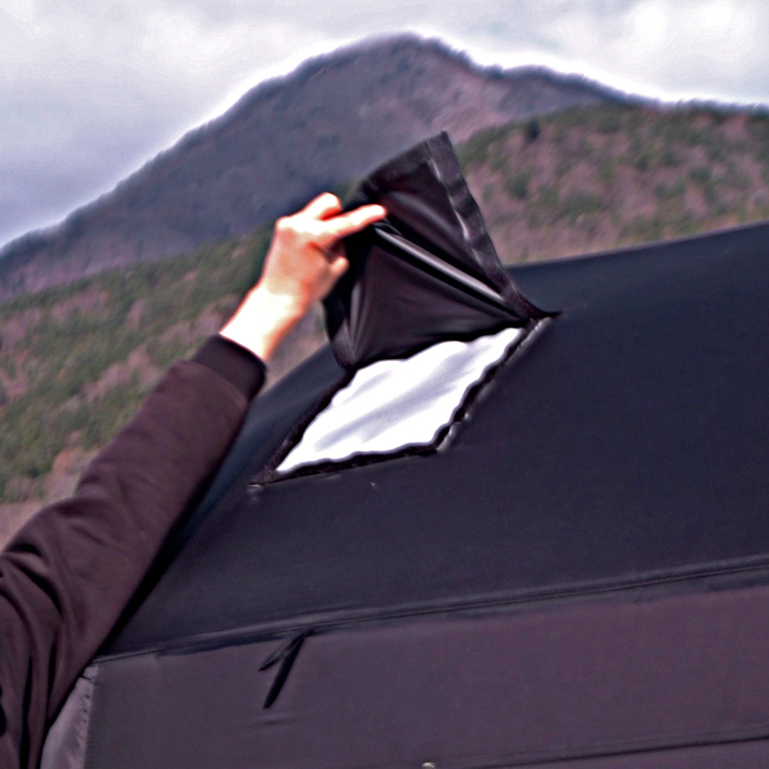 TPU窓があれば、雨や冬キャンプのおこもりでも景色を楽しむことができ、閉塞感を軽減。