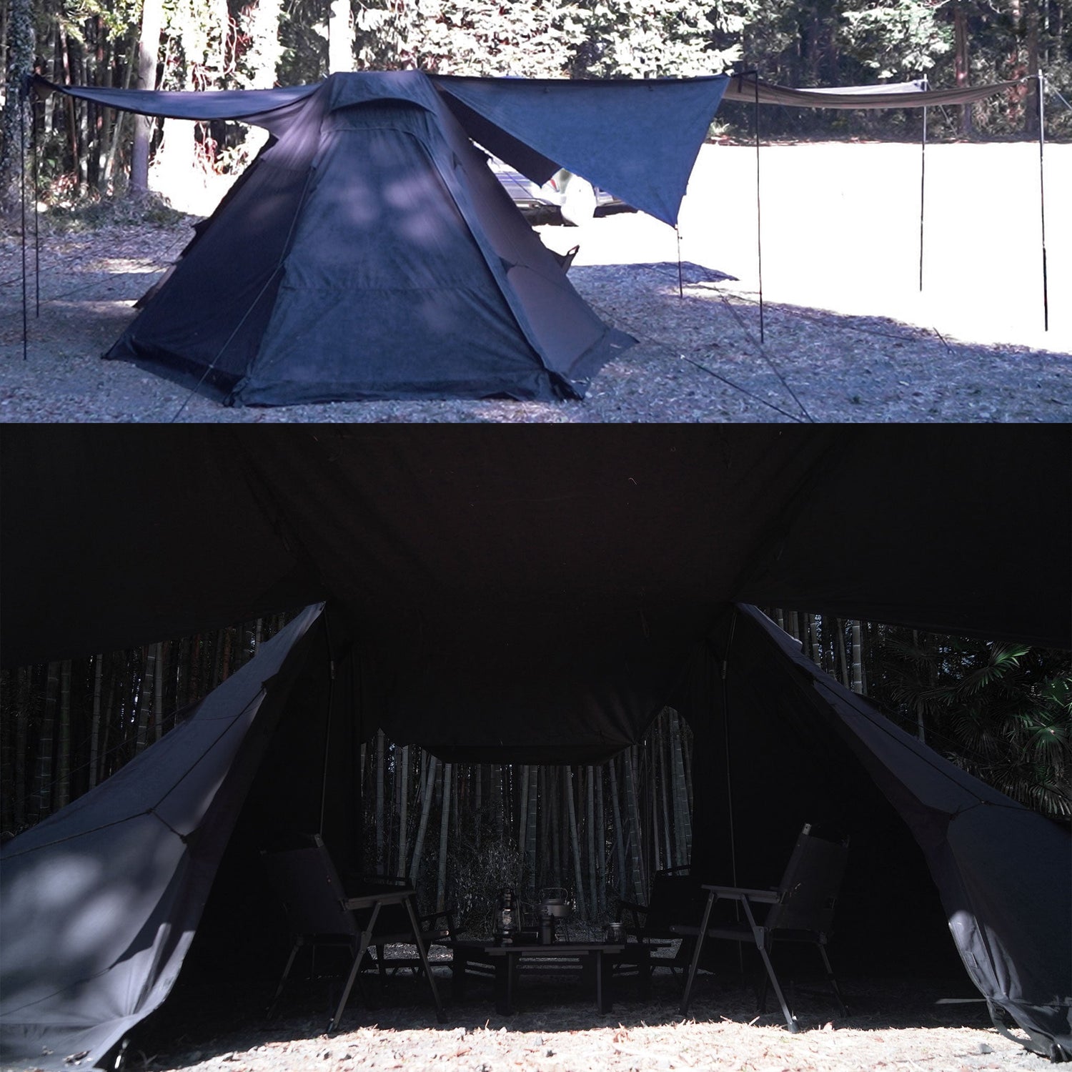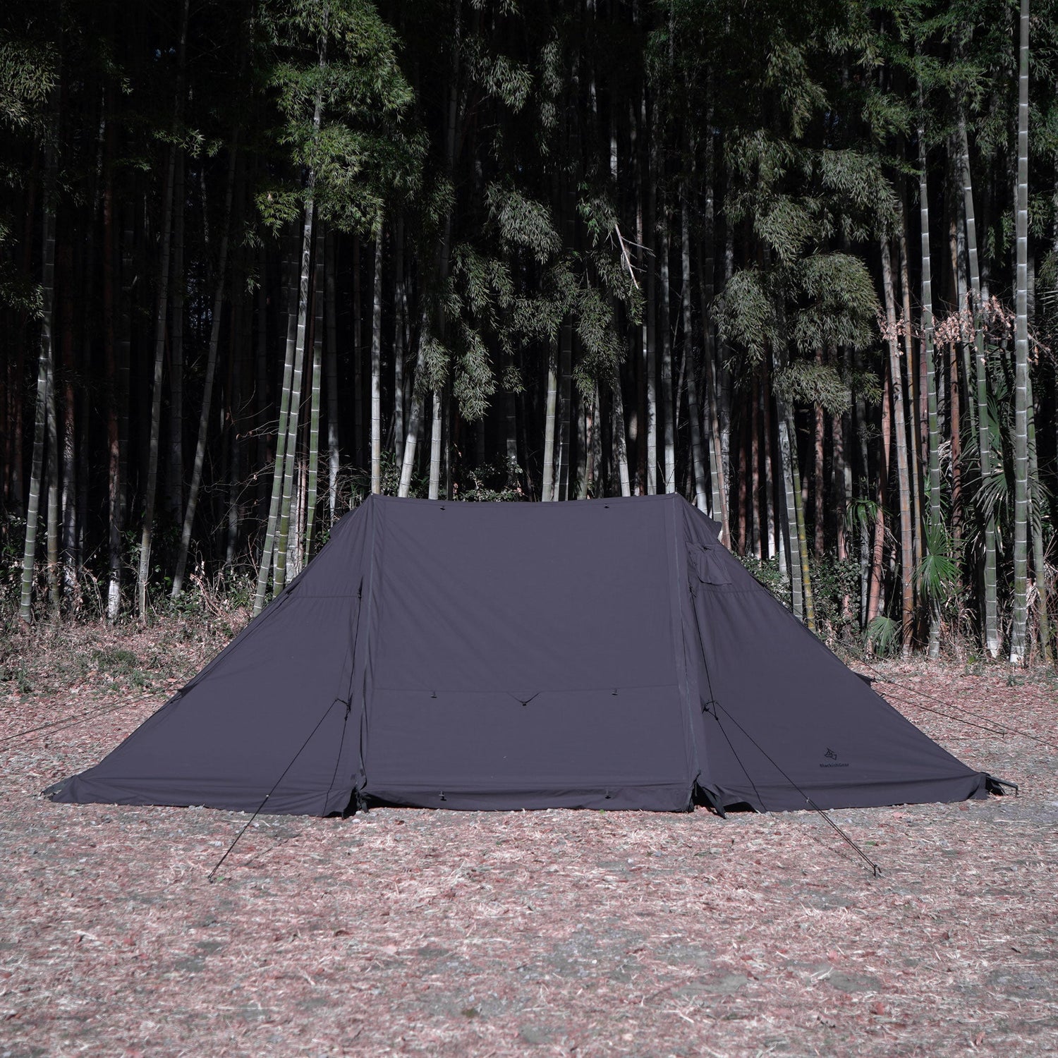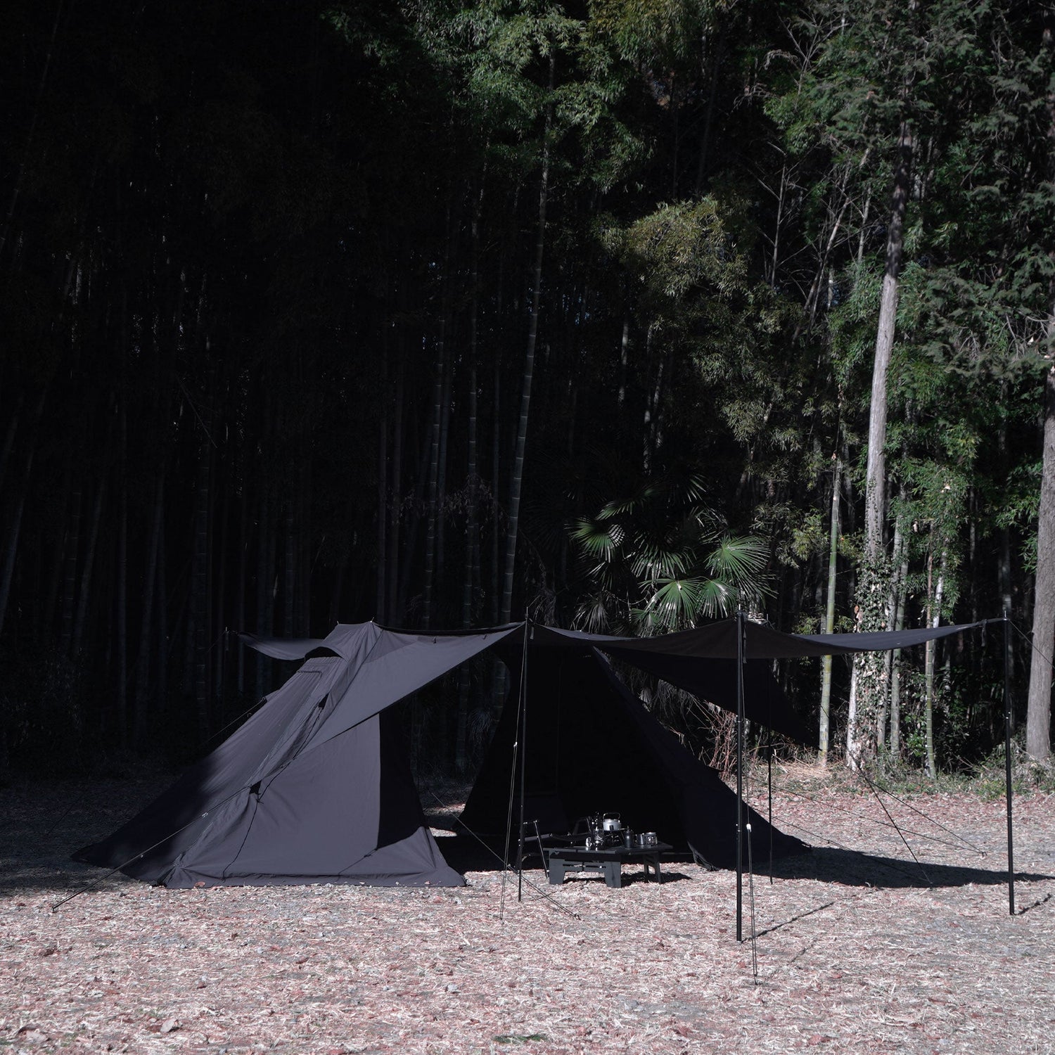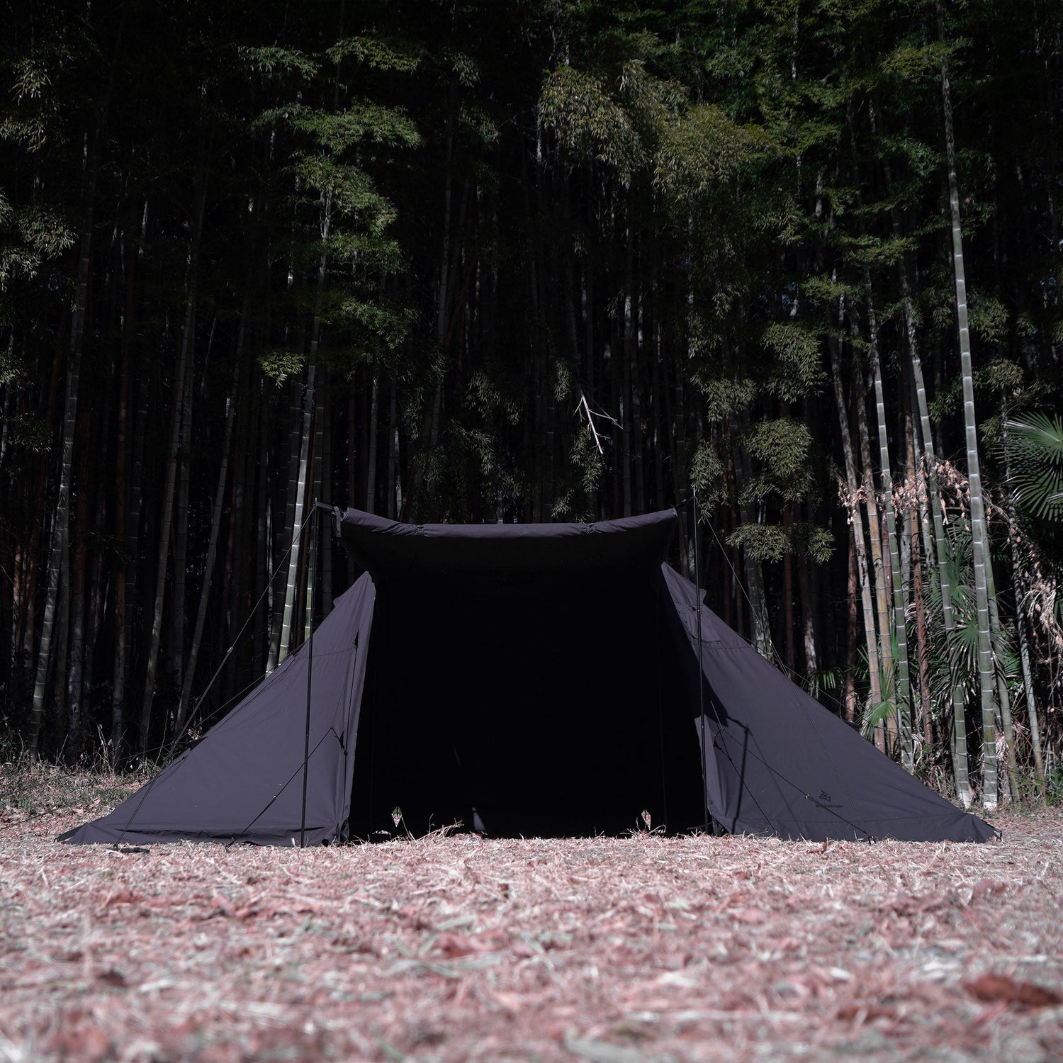V2(バージョン2)となったブラックシェルターツインはデザイン性&カスタマイズ性&通気性を兼ね備えたハイスペックなブラックツーポールテントに生まれ変わりました。