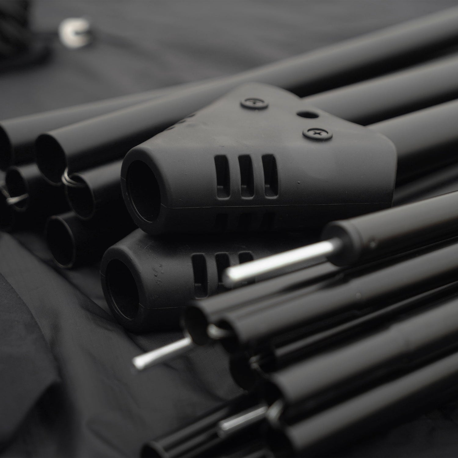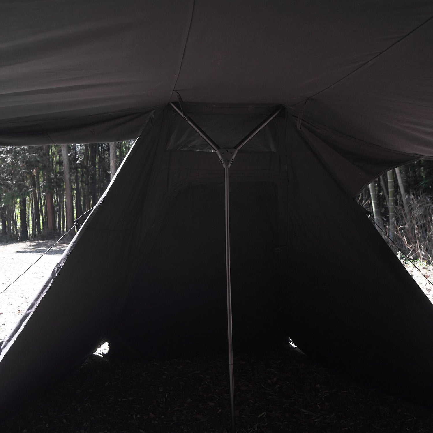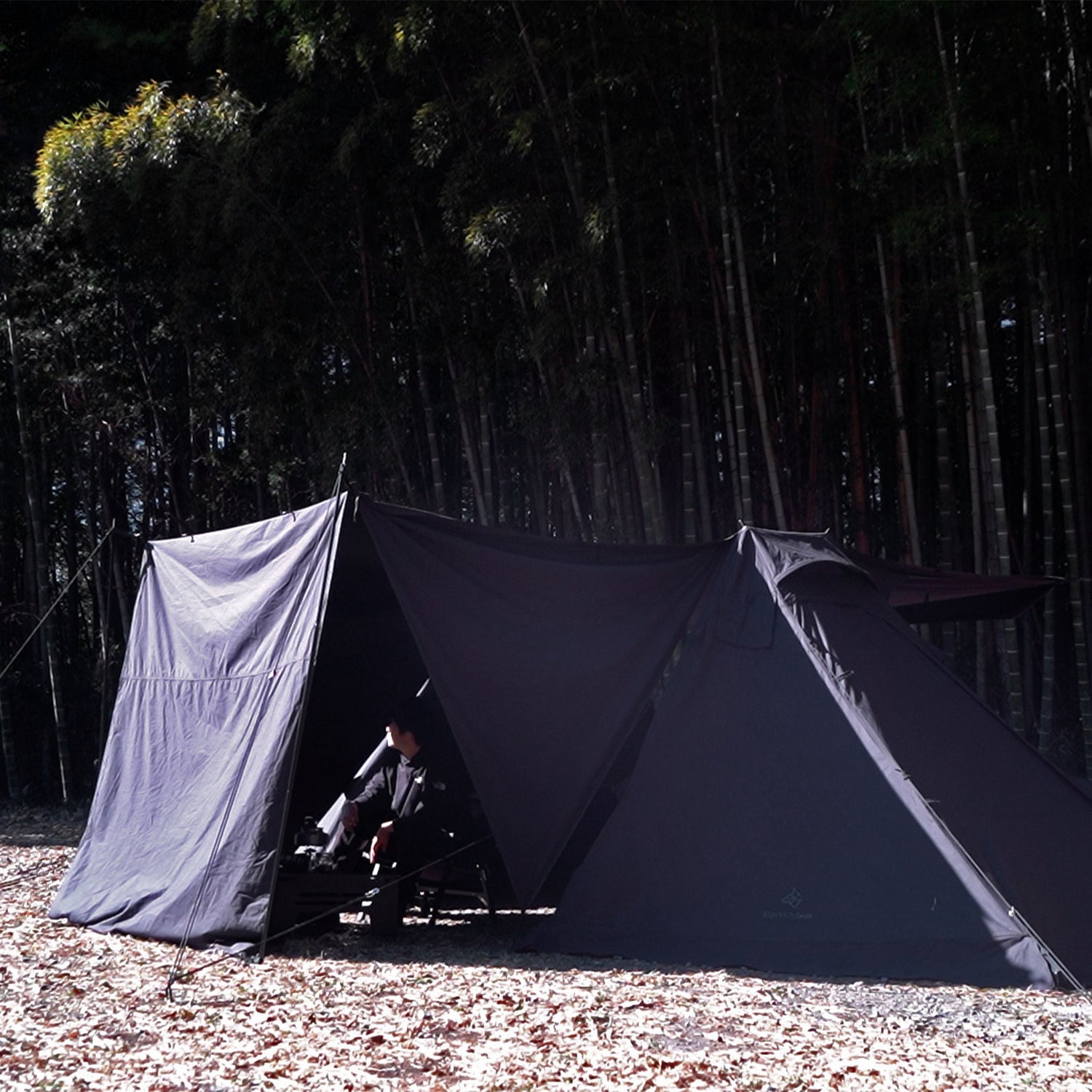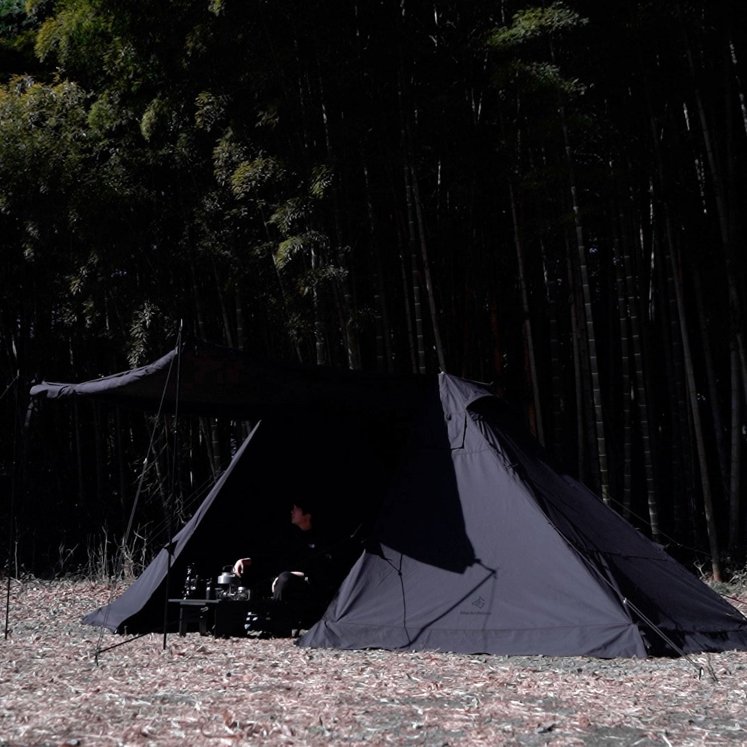 V2(バージョン2)となったブラックシェルターツインはデザイン性&カスタマイズ性&通気性を兼ね備えたハイスペックなブラックツーポールテントに生まれ変わりました。