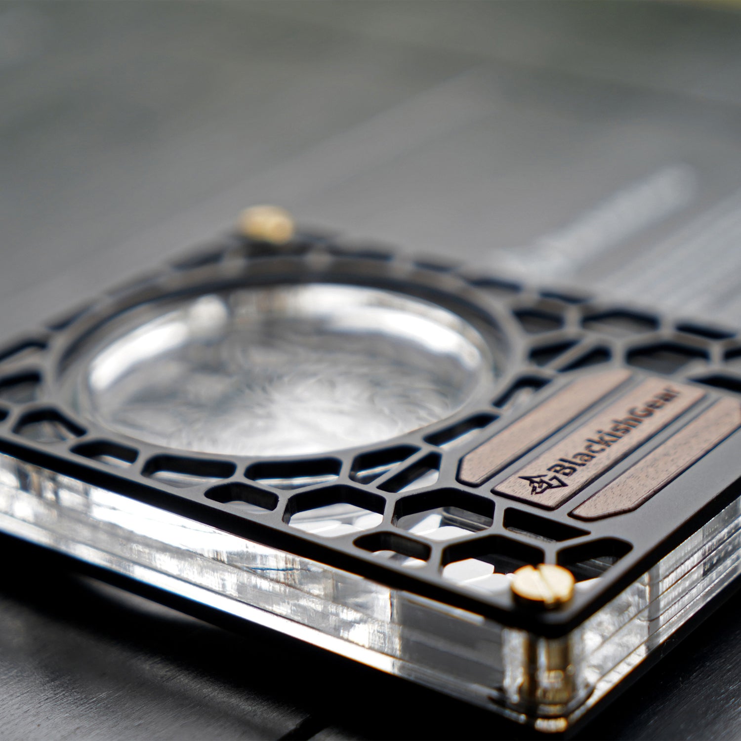 素材:国産アクリル、ウォールナット(ロゴ部)、真鍮ネジ、3M製滑り止めゴム